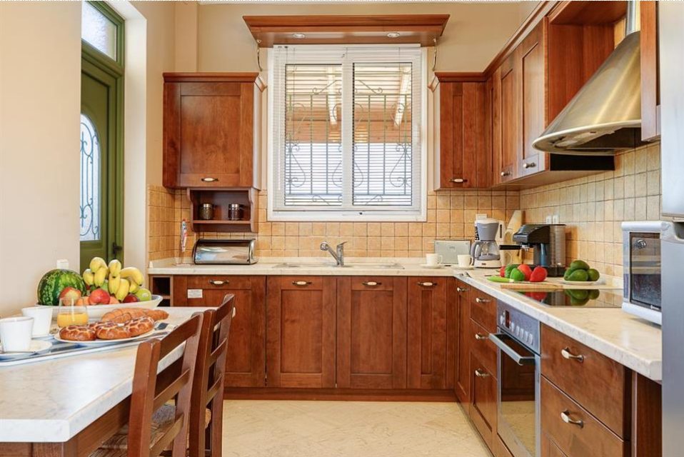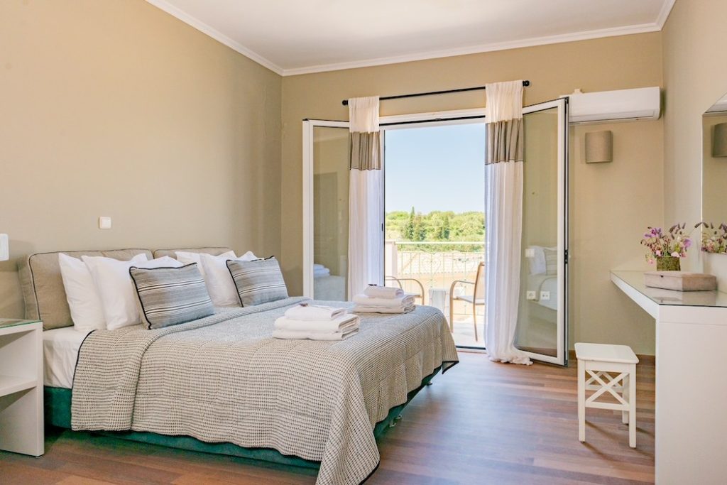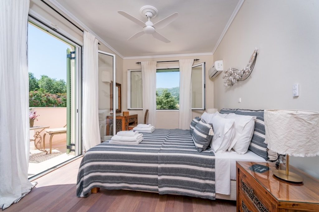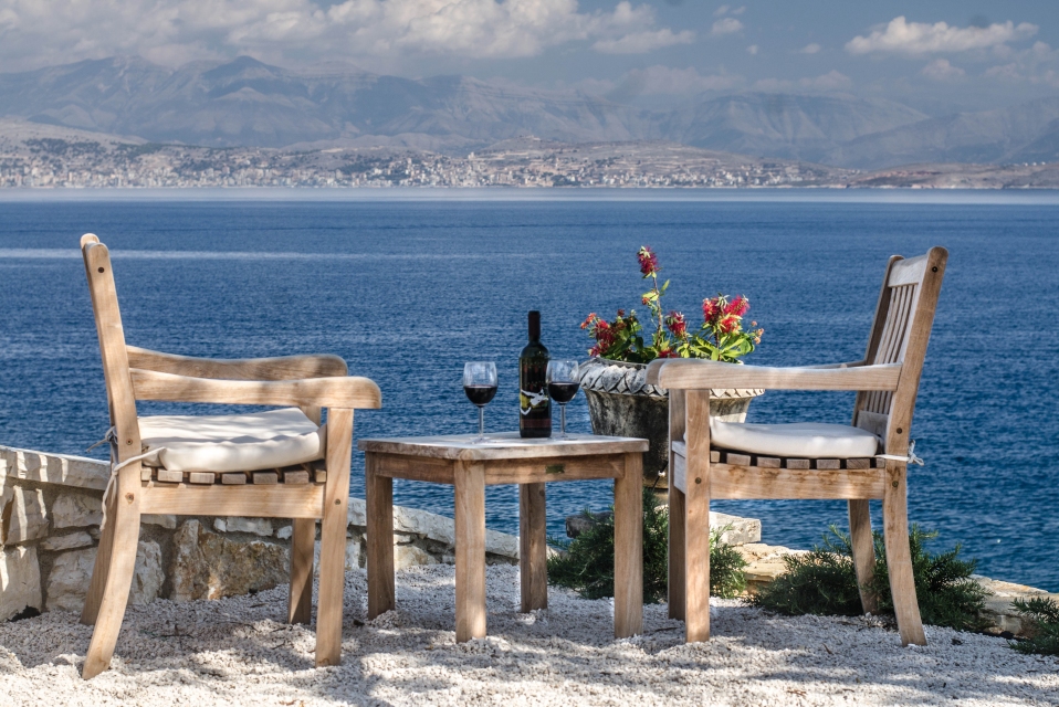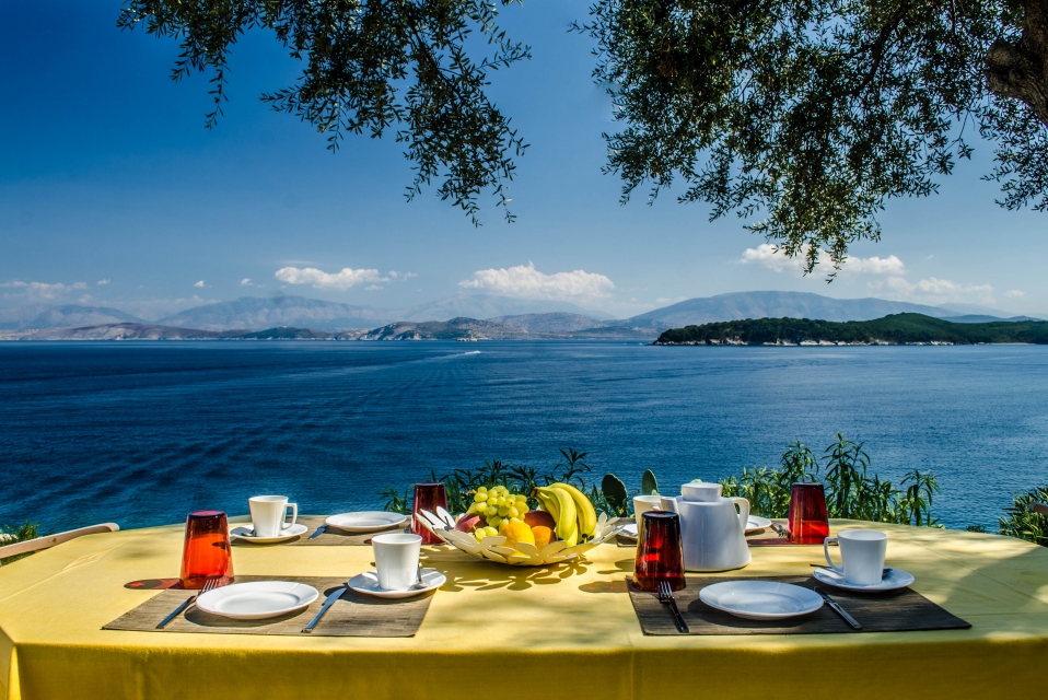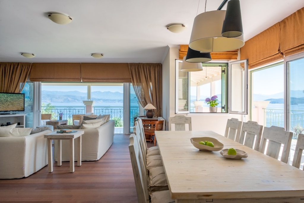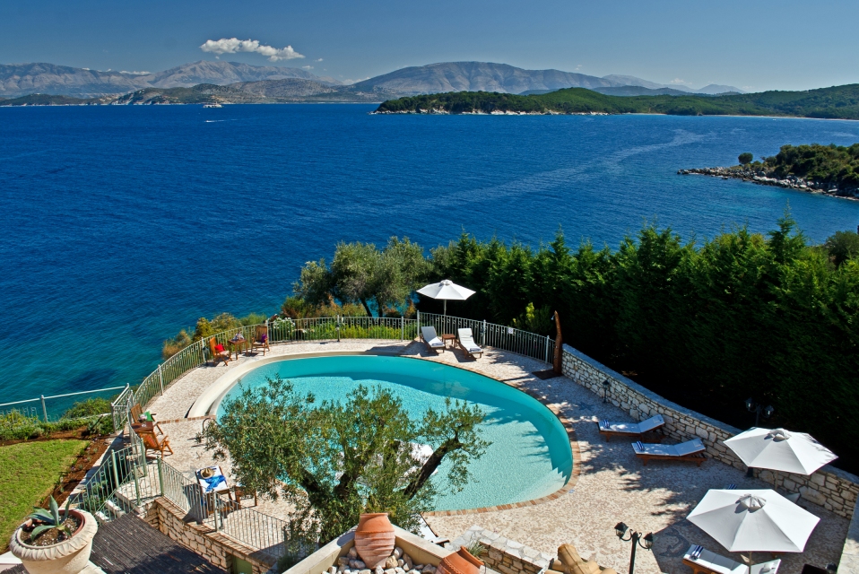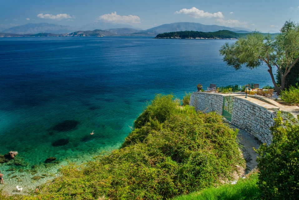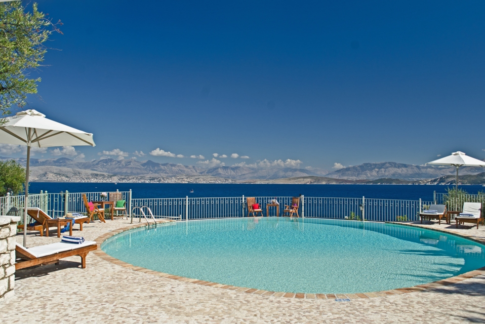 Outside, the private pool and sun terraces are ideal for lazy days in the sun or evening dinners under the stars, while the gardens provide a quiet spot to relax with a book or enjoy the scenery. Balconies offer sweeping views over the Ionian Sea, letting you make the most of Corfu’s beauty at any time of day.