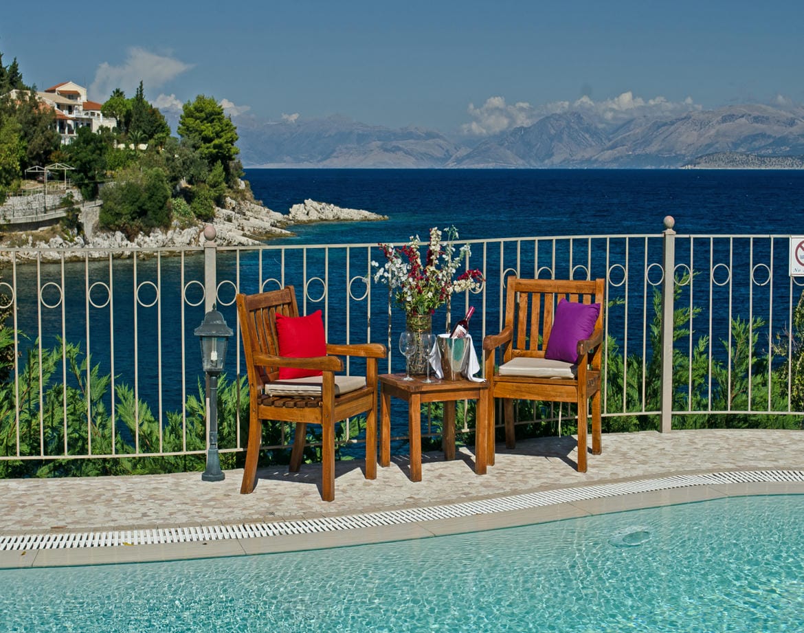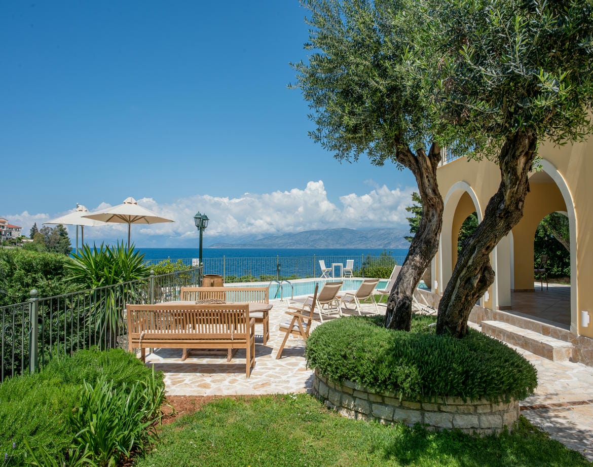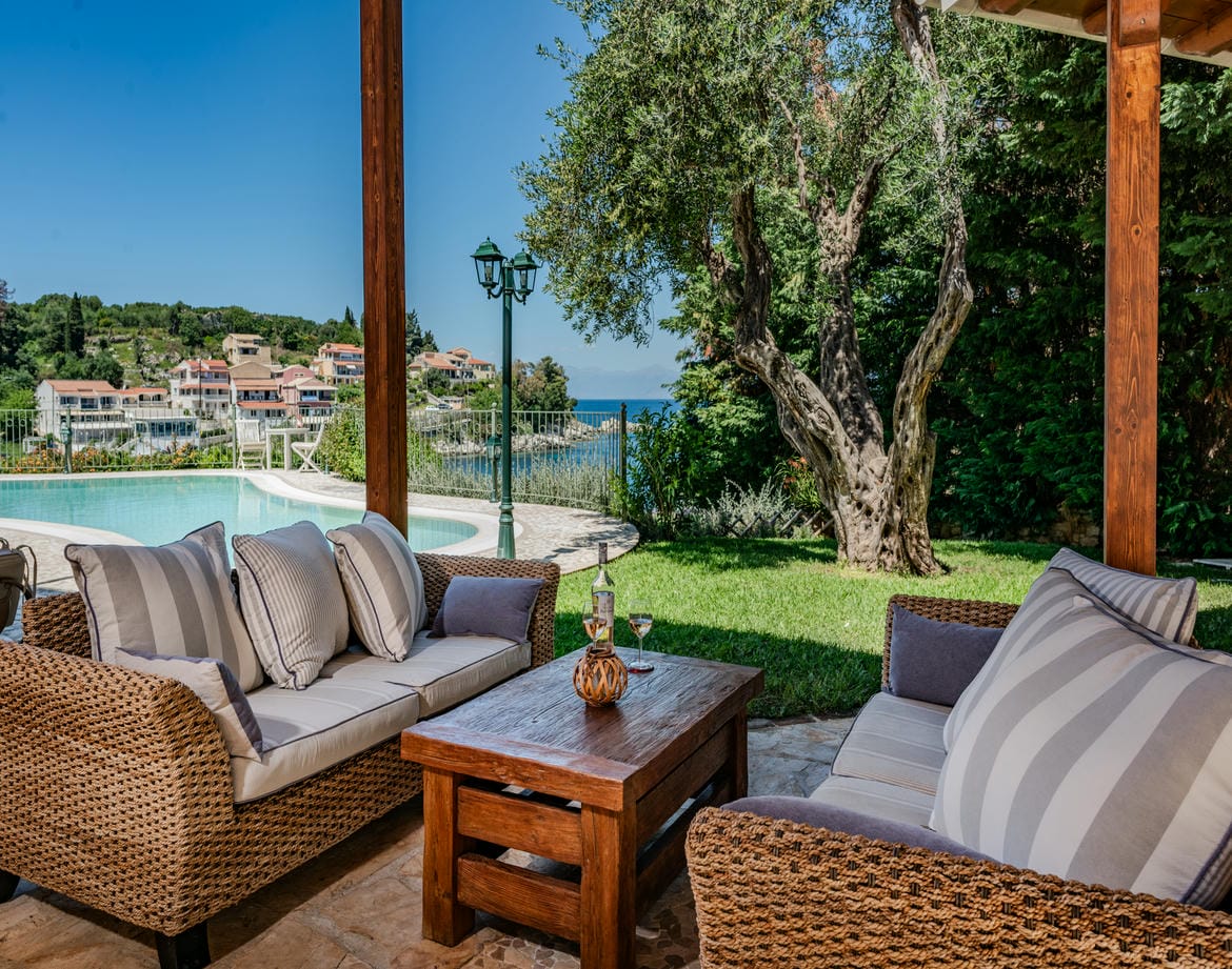 Villa Alice with its fantastic outside areas, are perfect for both relaxation and entertaining, with a large private pool (18m x 5m; depth 1m–2m), views accross to the Kassiopi Castle. Surrounding the pool are sun loungers, parasols, and a variety of chill out areas. Guests can enjoy alfresco meals by the a brick-built BBQ under the covered veranda.