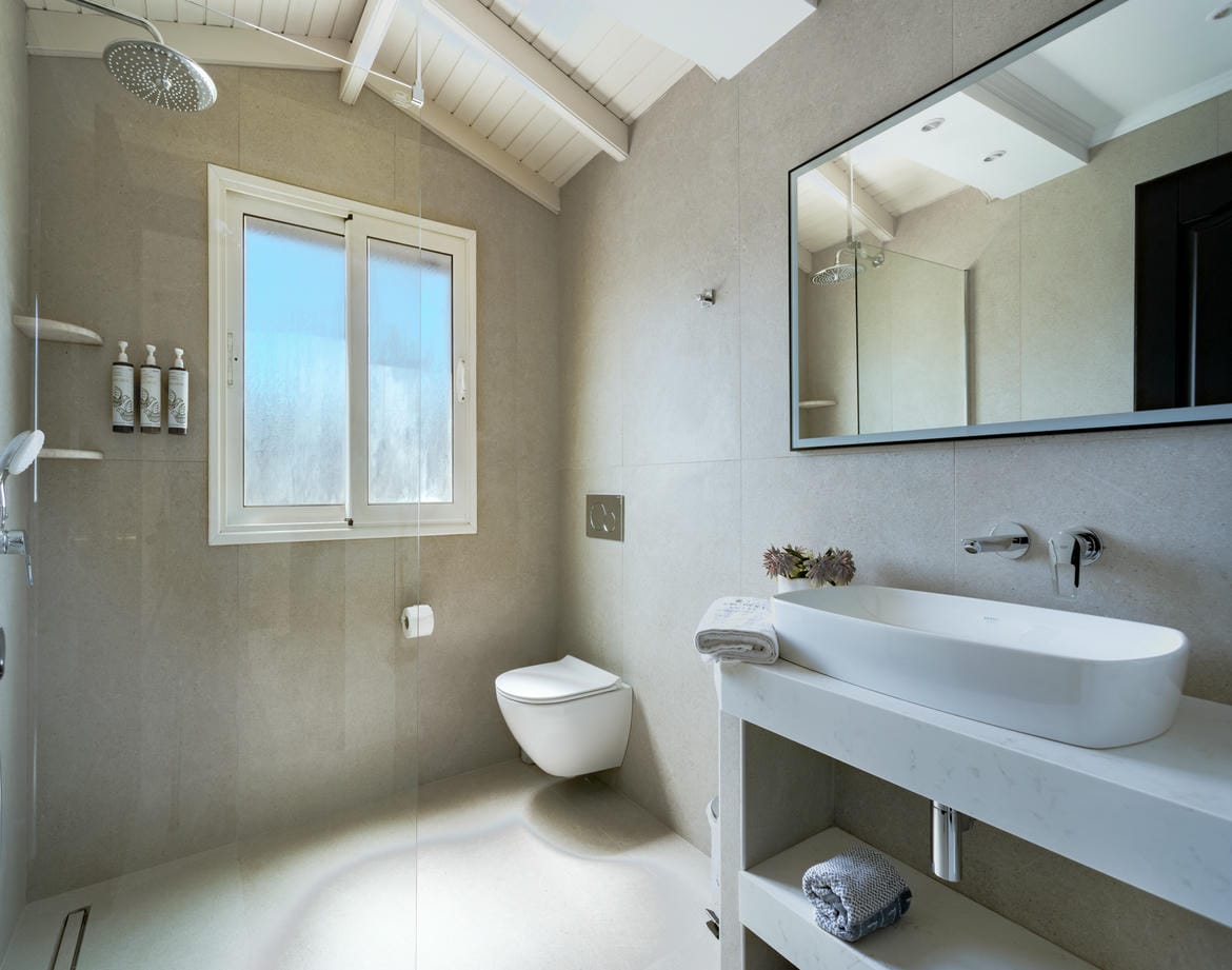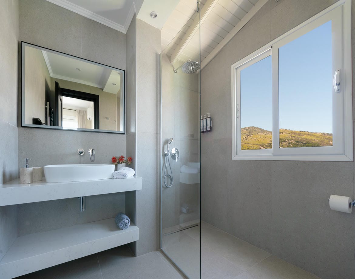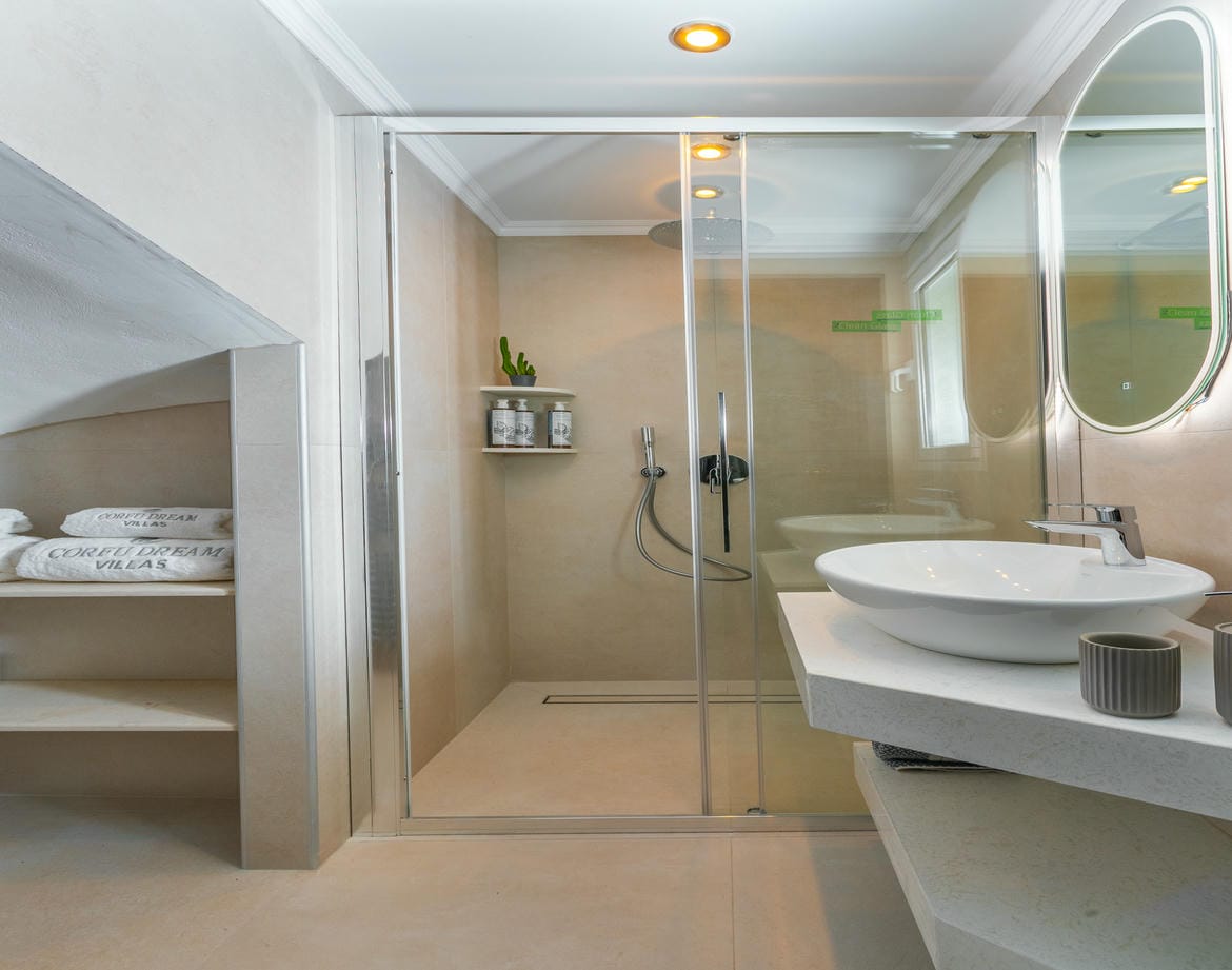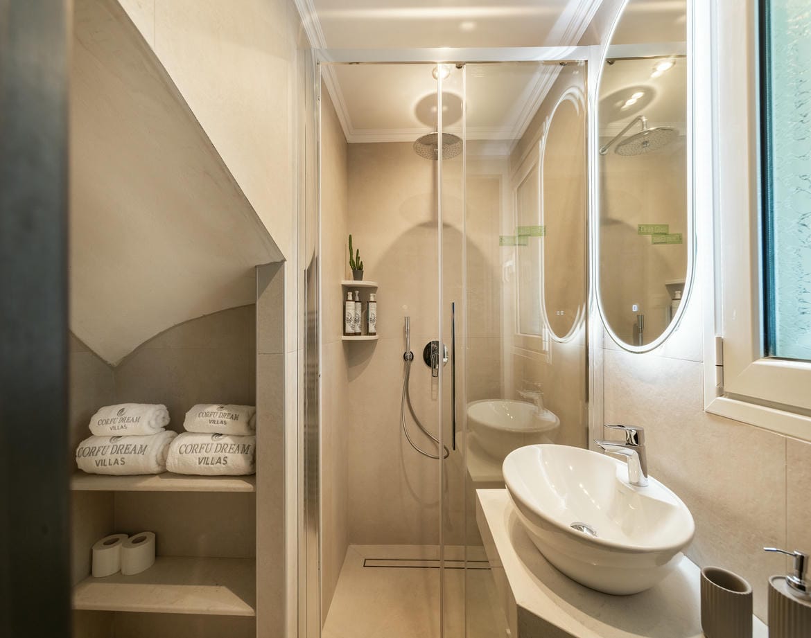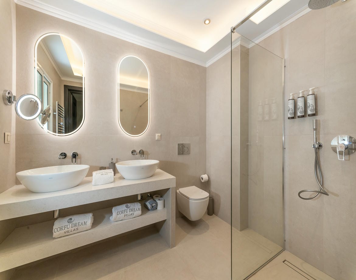 The villa also offers bathrobes & Korres Soap, Shampoo & Body Cream.