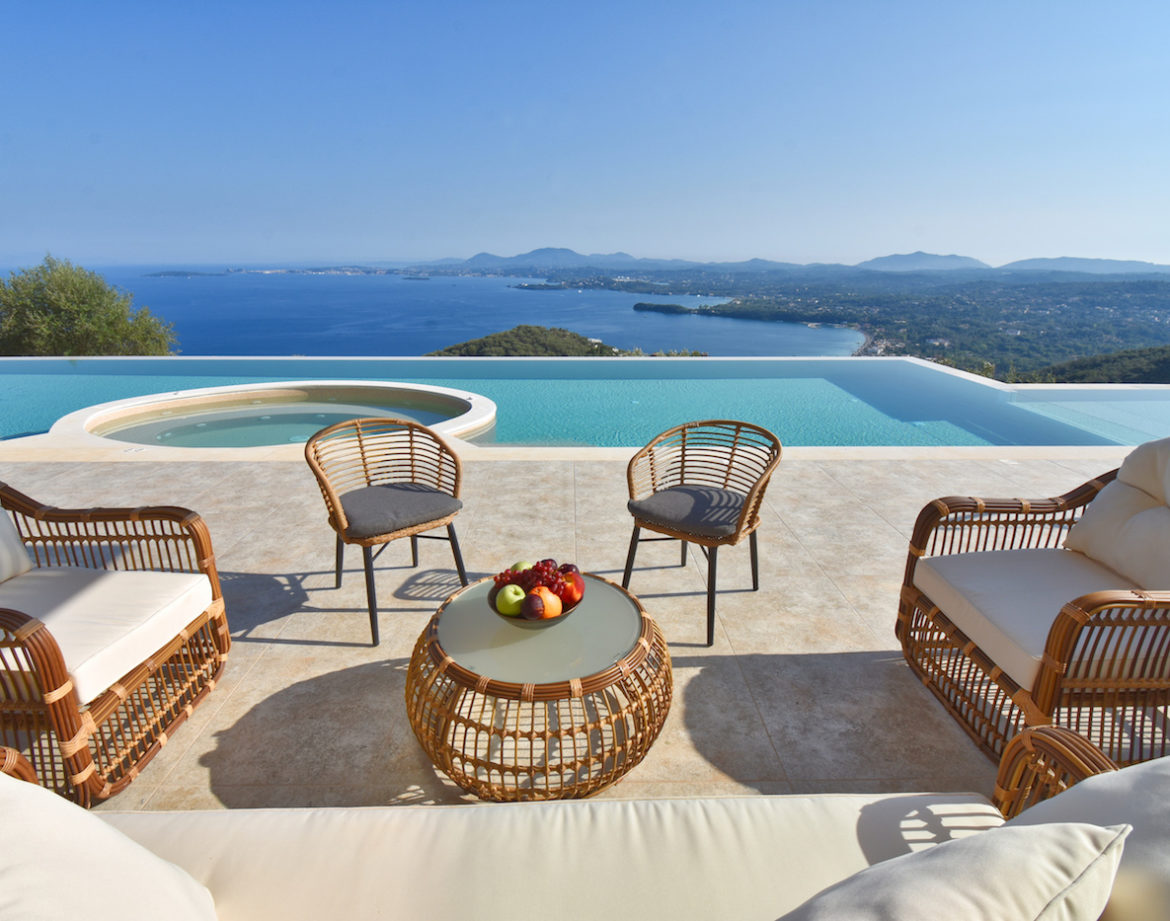 Nestled on the rocky mountainside amidst acres of ancient olive trees this villa with its modern & contemporary design enjoys mesmerising views over the bay towards Corfu Town and the east coast of the island. For those clients looking for solitude and luxury then this property will more than fit the bill.