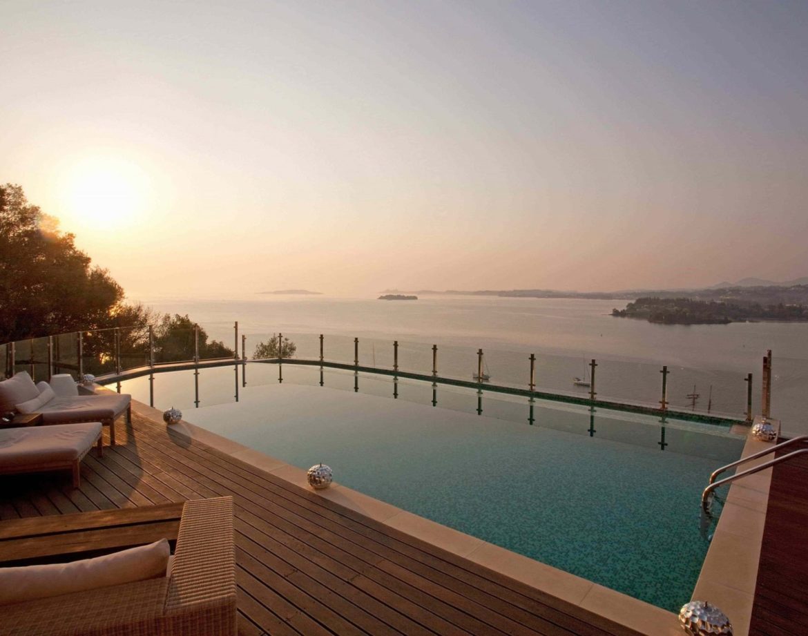 Located on a small private estate and built on a small hill with breath-taking views of the bay towards Corfu Town, this beautiful villa is in the heart of one of Corfu’s most prestigious residential areas Kommeno. Just a few minutes walk to the beach, this villa is perfect for enjoying a morning swim in the crystal clear water.
