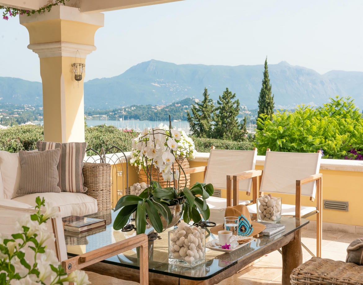 The extensive varandas of Salamandra enjoy stunning views over Gouvia Marina and the North East coast beyond, there are plenty of comfortable rattan sofas here making this the perfect location to relax and enjoy pre-dinner drinks.