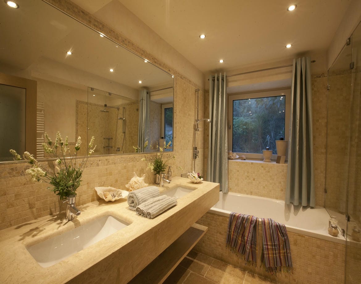 Bedroom 1 – Super-king bed with celing fan, en-suite bathroom features bath with shower