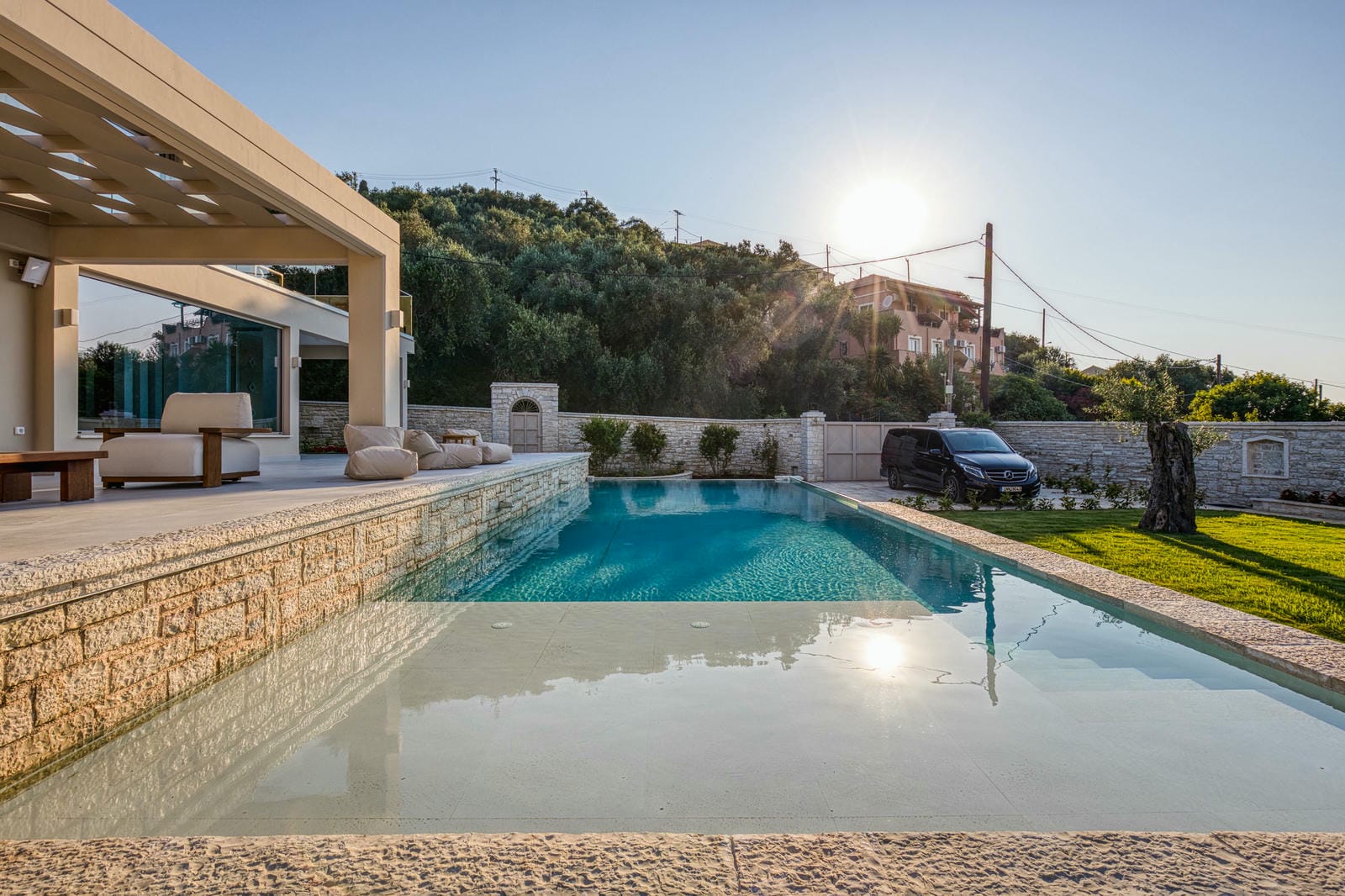 Surrounding the private swimming pool, a collection of sun loungers invites you to soak up the Corfu sunshine in complete comfort.